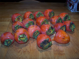 Oh, yes and lots of persimmon things. My neighbor's tree was prolific this year and I have a freezer full of persimmon pulp just waiting to go into cookies and puddings. Having persimmons ensures that I will have a lot of guests. I think they smell when I'm baking and just happen to drop by! Lovely.