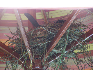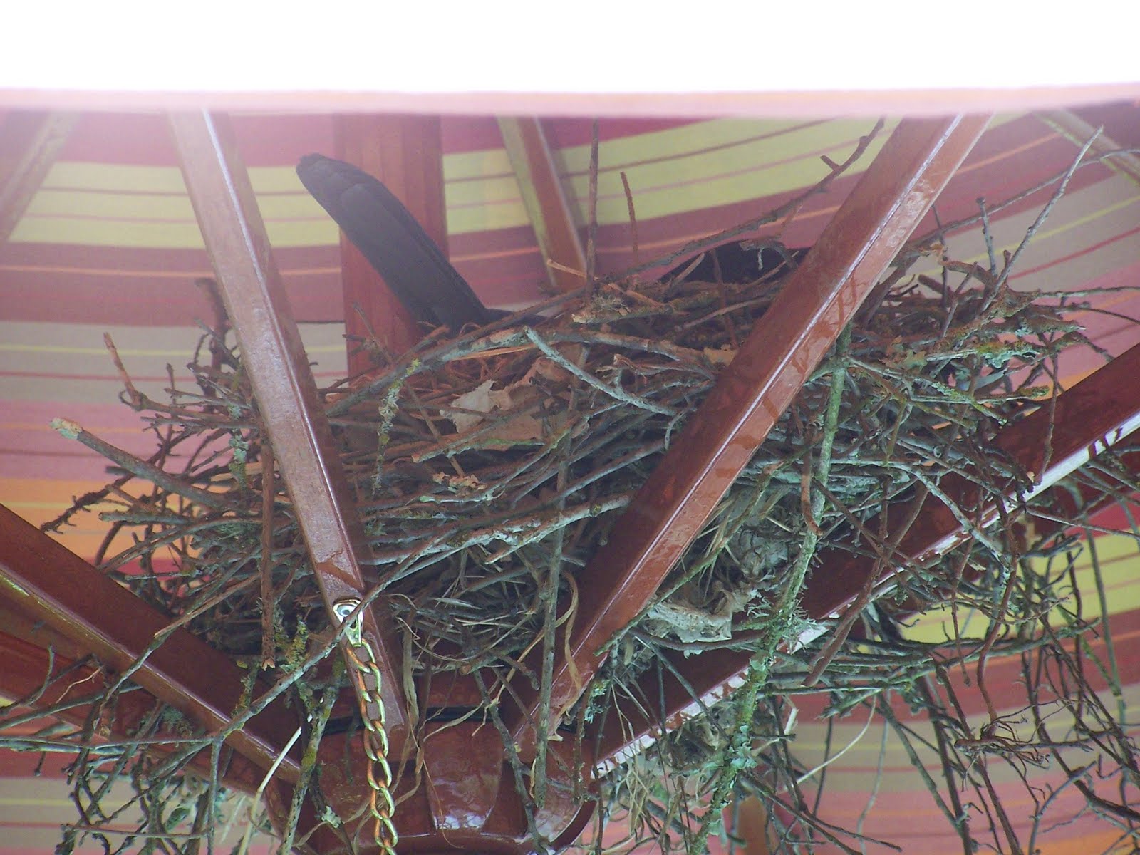 And how about this bird with creative nest building talents? I put up my umbrella and when I came into the garden two days later this is what I found. She doesn't seem to mind my sitting under her while she hatches her brood, so I can watch her as she and...