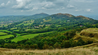 I look at hills. Jaggy or round in form. Across my horizon and all in a row. Woodland on a small quantity, individual growths on an additional amount. Clouds scud by as a backdrop - hint of indigo, part pink, as sun sinks.