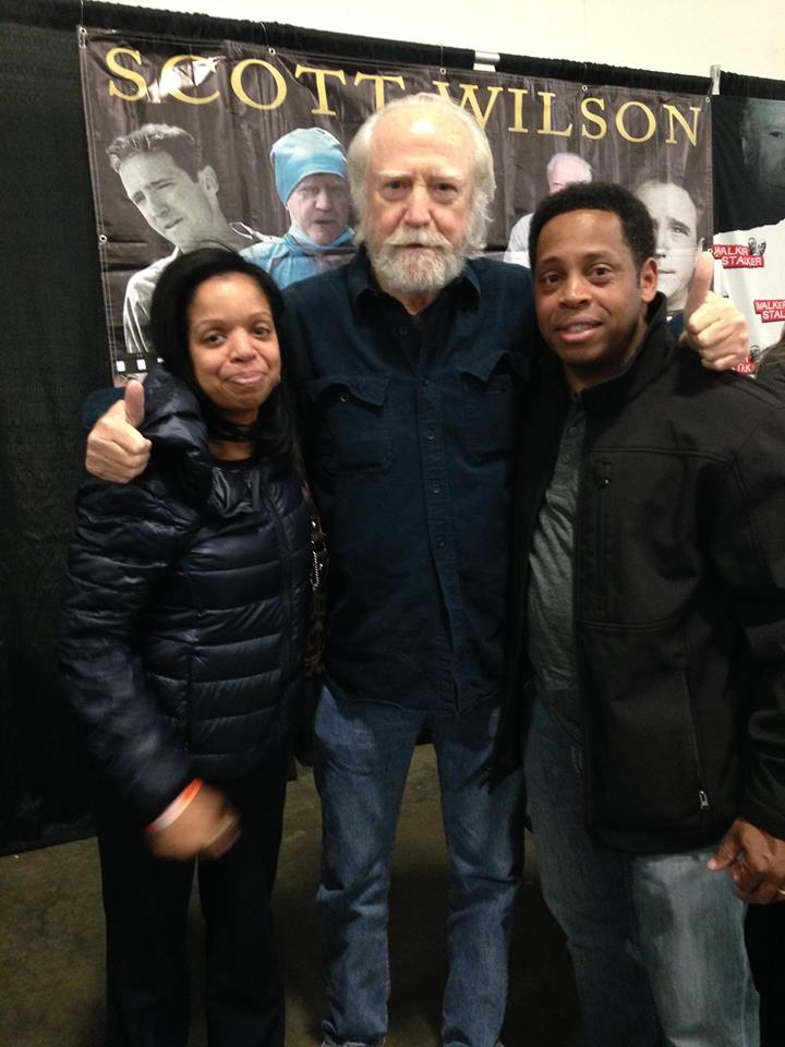 Once inside we immediately met Herschel! Okay we met the actor Scott Wilson who was a very nice guy. A little huggy with the wife and I imagined cutting his head off, LOL. But seriously though, he could sense that my wife couldn't quite get into the Walking Dead/ Zombie thing as was trying to make her feel at ease. As I stated earlier he's a real nice guy.