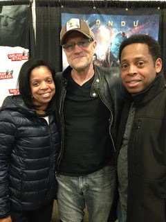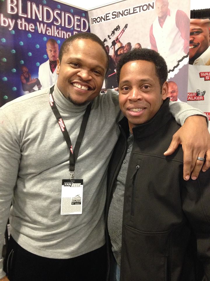 We then were able to meet one of my all time favorite characters from The Walking Dead TV show, T-Dog (IronESingleton)! This just might be one of the nicest PEOPLE I have ever met. There were two lines for people with general admission and for others with VIP passes and he treated everyone the same. He spent equal amounts of time with everyone and was actually interested in the fans and loved taking pictures. This guy loves to hug EVERYBODY! He almost broke my neck but it was all love. LOL. he shared some plans with me on some music he is working on so I wish him luck. I wonder if he will b e allowed to use the T-Dog name.