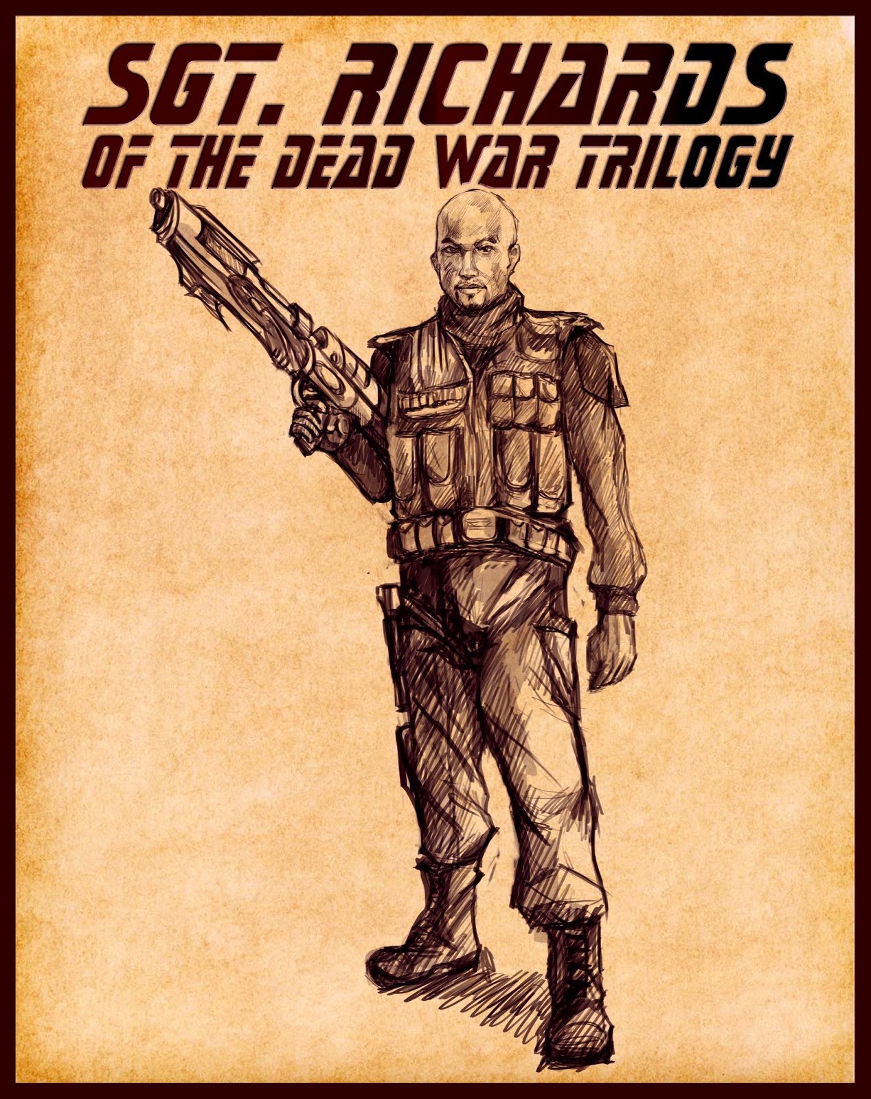 Hey it's me Dead War author George Cook. I asked an artist to a drawing of Sgt. Richards based on the description in the book. Check out the photo below and let me know what you think.