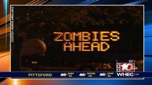 Imagine driving home and seeing an ominous sign reading "Zombies Ahead". Well drivers in the Rochester NY saw a sign that said just that. Authorities believe the sign was hacked. The question I have is how many heeded the sign and turned around?...LOL.
