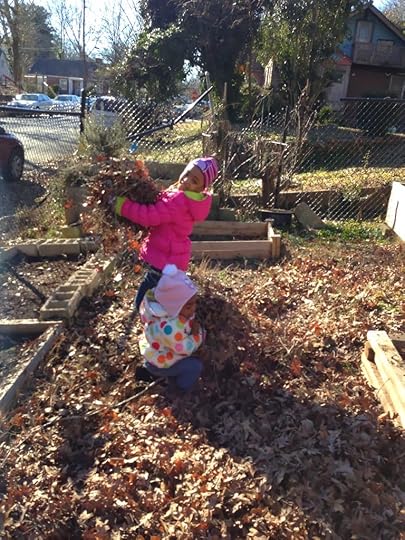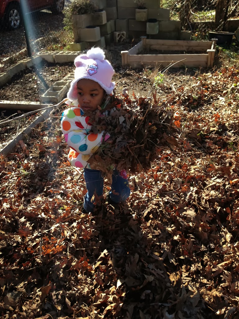 My daughter goes on to explain in detail how Dr. King taught people - especially those who didn't look alike - to be kind and fair to each other. She even related examples from the Movement like blacks and whites not being able to use the same facilities to her multicultural collection of friends at her school today. I'm elated as we pull up to the Attwood Community Gardens and Urban Farm, where we spend the next 90 minutes raking and hauling leaves, cleaning up the grounds of this valuable neighborhood resource.
