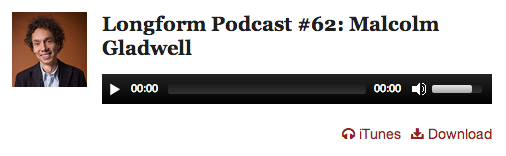 Now I'm listening to the Longform interview with author and New Yorker staff writer Malcolm Gladwell, and I feel like a disrespecting distracted spouse even writing this blog post while it's playing. The real reason for this post is because I wanted to figure out a way to capture the Longform episodes I really dig and those that can be extremely helpful. I considered posting them to Facebook, Twitter, my Tumblr account and even on Linked In. But I realized that the most enduring and personal social media space I'm most committed to maintaining is this blog.