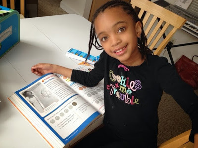 Blessedly the ancestors came to my rescue. After several hours of letting my big girl play on the iPad, I whipped open her math workbook and this is the first page I landed on: