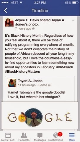 So we're definitely prepped for celebrating the amazing legacy of people of African descent, but I didn't necessarily get up this morning with a lets-kick-off-Black History Month plan, partly because it's #365Black around here. But then I saw this Google doodle on Facebook and, of course, I had to share: