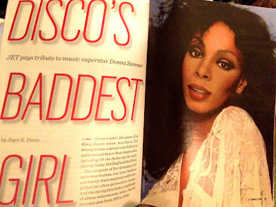 I arrived home yesterday evening to find my tribute to the incomparable Donna Summer in the new issue of Jet Magazine - the one with the incredibly attractive Idris Elba on the cover. As always I gobbled up the whole issue immediately: Relived writing my Donna piece (her On the Radio album was one of the first I ever had), salivated over the honesty of Idris (he's getting finer with age), and enjoyed the surprise of seeing my former coworker (Ericka Pittman, VP Brand Strategy, Sean "Diddy" Combs' The Blue Flame Agency) as one of the Jet Set 10 Under 40: Young Gifted & Black.