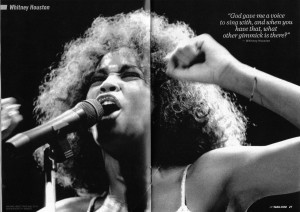 Through Whitney passing I learned something about myself - from my mother, who told me that in the early eighties she'd been wondering whether my brother or I would inherit my father's singing talent. Turns out that she realized it was me when she heard me singing "Saving All My Love For You" in the backseat of her car. While I sang solos in church and school choirs, singing went the way of dance and softball by the time I reached the 11th grade. Boys and college - specifically Howard University - took over.