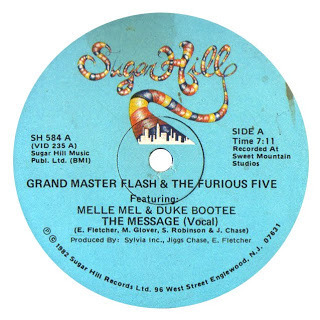 Check my baby's hair - mirror image of GMF's Melle Mel (far left in the top picture), who ripped it in the group's blazing 1982 single, "The Message." I was 11 years old when this dropped and since radio stations in Atlanta weren't playing hip hop at that time I probably heard it on a mixed tape - several years later.