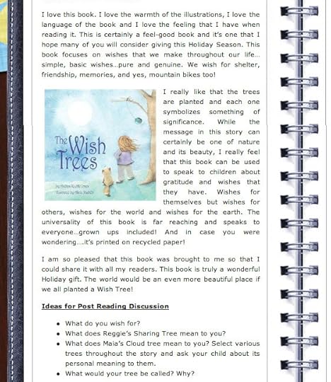 "This is a wonderful book for all ages, with an inspiring and timely theme of caring for the world we live in. Young children especially will love the gentle story and enjoy the colourful illustrations. I highly recommend The Wish Trees!" - Deb (Goodreads)