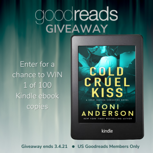 Enter for the chance to win one of three paperback copies of the upcoming release COLD CRUEL KISS by Toni Anderson.