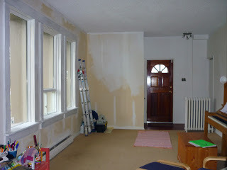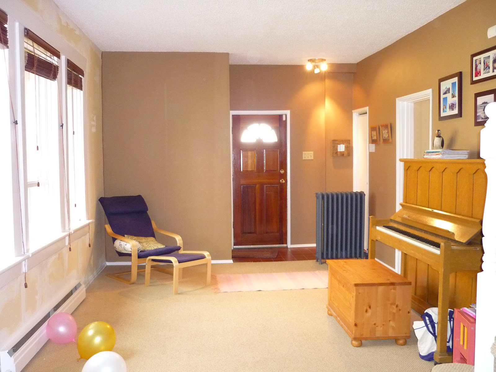 Painting all done! We've ordered wallpaper from The Wallpaper Company (great name, huh?) for the window wall, but it's going to be another week before it arrives. We're more than halfway there though :) Then we'll slowly turn it into a music/reading room with some new furniture (as finances allow). Slow progress but we are getting there.
