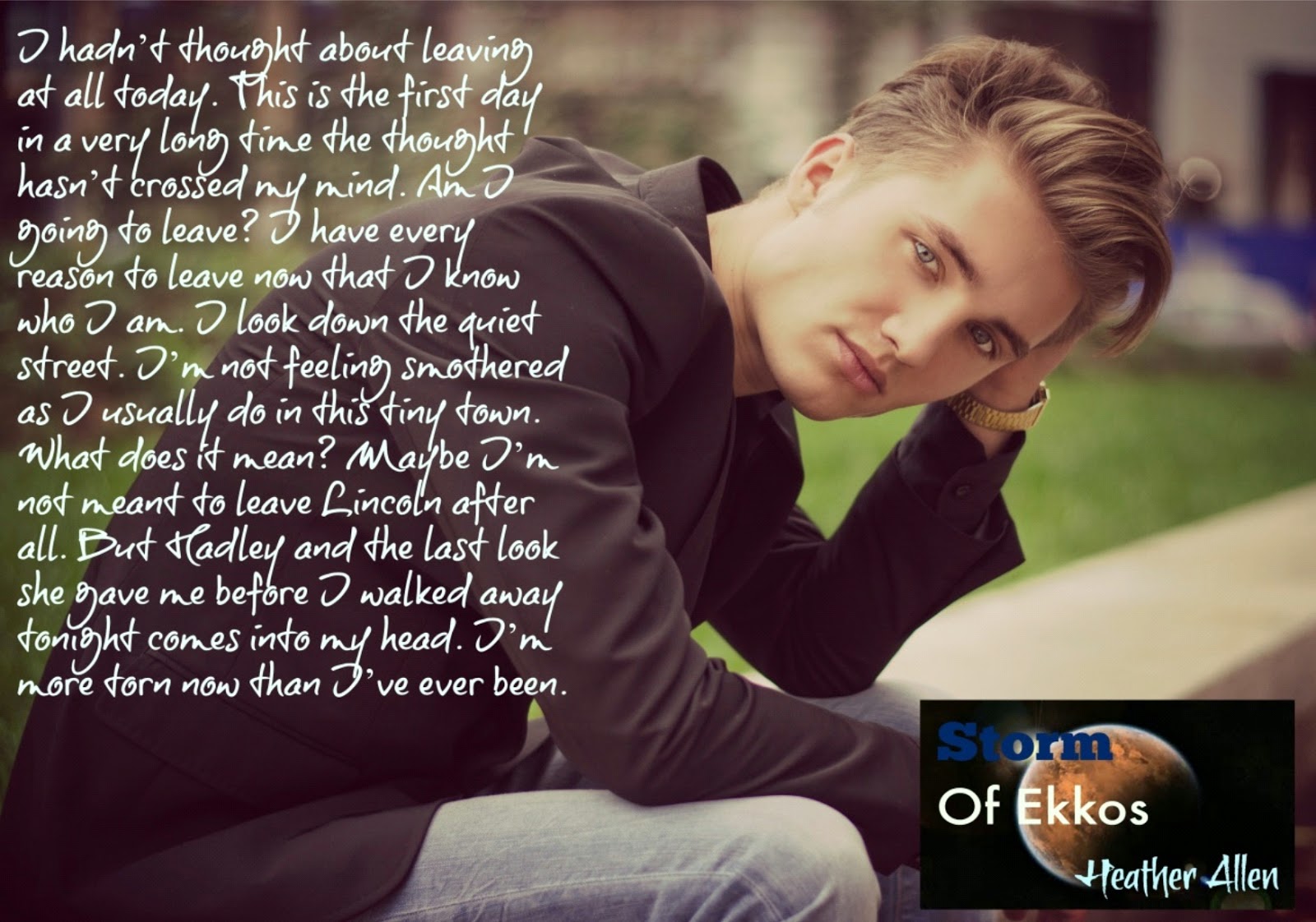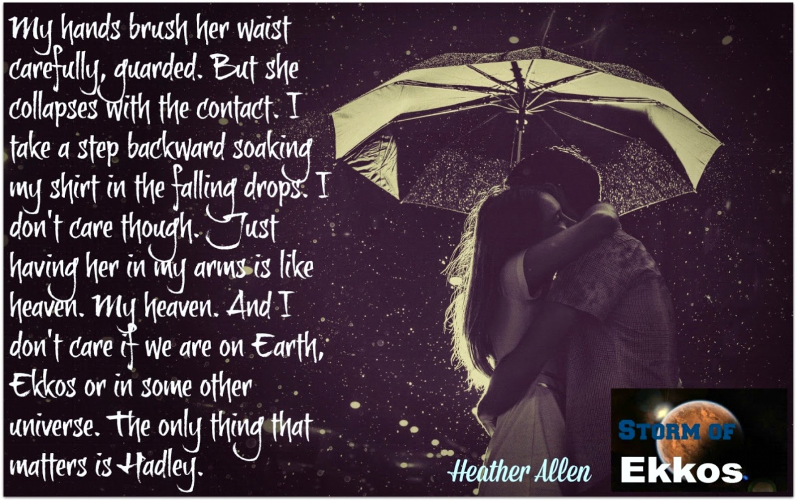 Heather Allen is the author of The Just Breathe Trilogy, Feeling This, The Sound of Shooting Stars and her recently released New Adult novel, Let Go about an MMA fighter. And now the first book, Storm of Ekkos in her new Paranormal Young Adult Saga. Heather finally realized her dream of becoming an author just over a year ago with her mermaid trilogy. She savors every moment on this journey and the wonderful friends she has met along the way. She has many more books planned. Ideas pop up faster than she has time to write.