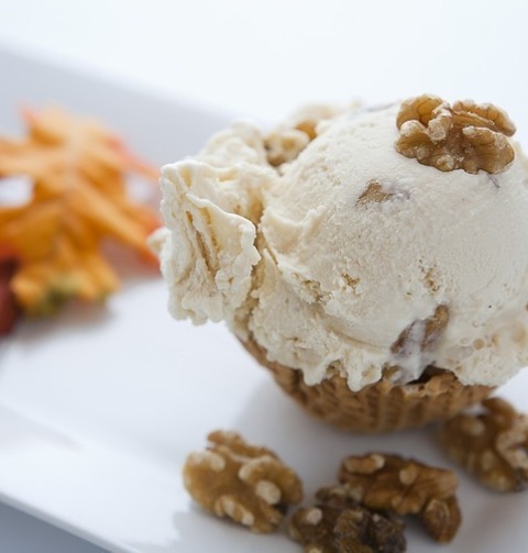 Recipe for Homemade Walnut Ice Cream in a Waffle Bowl