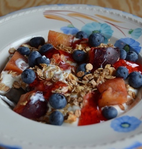 Made with Plain Yoghurt, Honey, Almonds, Plums, Fresh Blueberries, Oats. This Blueberry Plum Yogurt with Oats is a nutritious and tasty breakfast or snack. The crunch of the oats and almonds perfectly balances the sweet blueberries, tart plums, and creamy yogurt.