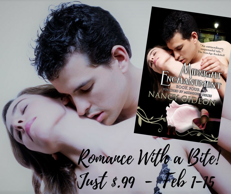 For a taste of these dark, forbidden romances, here's a February treat: From the 1st until the 15th, MIDNIGHT ENCHANTMENT, only $.99 (!), pulls you into the seductive world of the vampire - my favorite vampire - the sleek and sinfully wicked Gerardo Pascale, the naughty villain from the first three books. Take a bite . . . you'll like it!