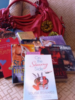 Thanks so much to everyone who entered my Cute Purse Full 'O Romances Giveaway! I wish I had an adorable bag and ten fabulous romances for each of you. In fact, there were so many entries (almost 100) that I decided to clear out my office a little more and do a second bag of books prize. So we have two winners! Different bags and different books, but all fun. And of course, both of you will get a signed copy of On the Steamy Side to whet your appetite for Just One Taste on August 31st!And the...