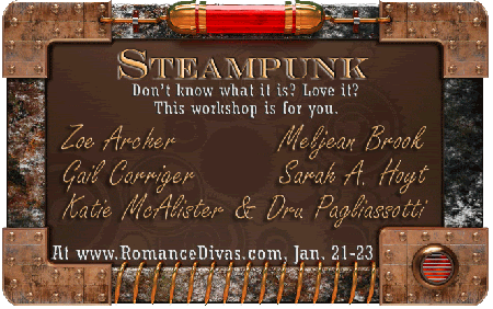 I confess, I've read the Wikipedia entry on steampunk, and that's pretty much everything I know about the subgenre. But it seems like all anyone is talking about these days, so I was very glad to see that the fabulous Romance Divas are putting on a workshop. Some extremely cool authors are involved, and they promise to explain what the heck all the fuss is about! Check it out: