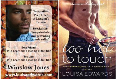 Since it's Saturday, I have a very special Romance Trading Card reveal for you! This is Winslow Jones, one of the most fun to write characters ever to steal every scene I try to write. There's just something about him--he's funny, sweet, with hints of a dark past that he somehow hasn't allowed to dim the brilliance of his smile and the zing of his personality. And did I mention he's a bit of a player? Yeah...