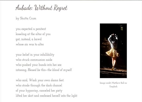 The post Poem by Shutta. Aubade: Without Regret first appeared on Shutta Crum.