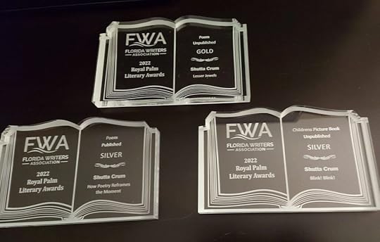 Excited to report that I won three Royal Palm Awards this year. Silver for an unpublished picture book: Blink! Blink! (Any editors interested in seeing it?) Silver for a published poem (below). And gold for an unpublished poem at the time of entry. That one has since been picked up by a major journal ( Boulevard), so I can’t post it until after it is published. Needless to say, I was over the moon!