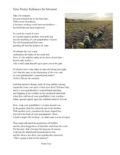 My award-winning poem: HOW POETRY REFRAMES THE MOMENT is below. It was originally published in Acumen, a literary magazine in England. Enjoy!