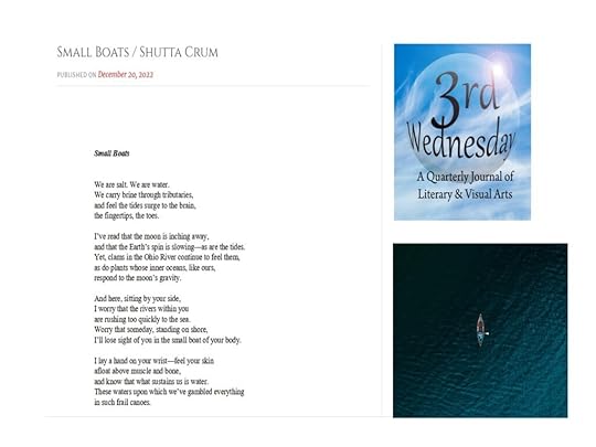 Yipee!! WTR did such a wonderful job highlighting my poem. The picture they chose is perfect. It is also linked to a short interview they did with me about writing the poem. Click on the picture above or here: https://westtradereview.com/onlineexclusivef22crum.html to be taken to their page and my poem. I hope you enjoy it! (If you do, leave a thumbs up, or a comment on the Youtube page with my reading of it.)