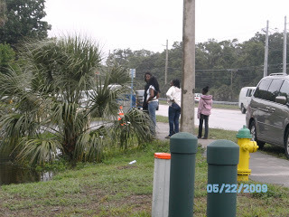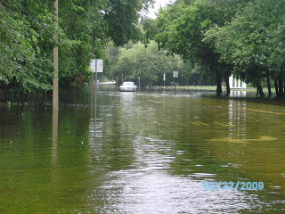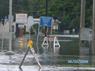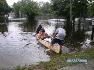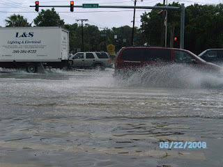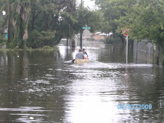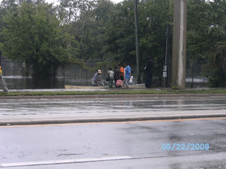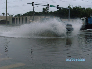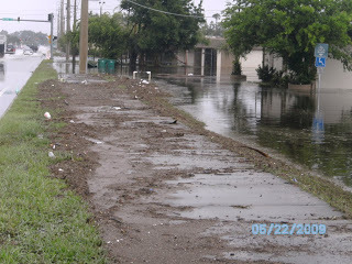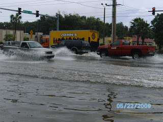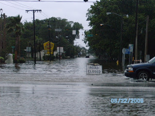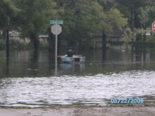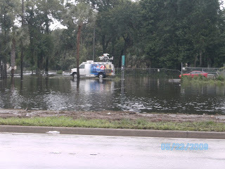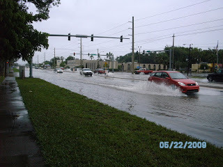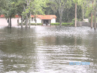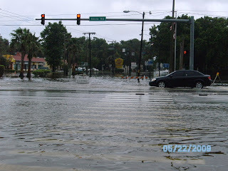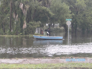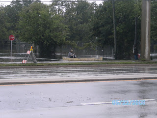 I went to pick up a prescription in the driving rain this morning and decided to go and get some pictures of the flooding. The photo of my feet in the water is to show the depth in the street. The flooding is serious and has reached inside the lower level apartments in Daytona Beach's projects.