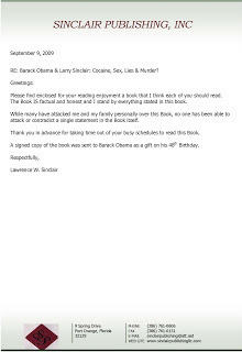 I will continue to send copies of the Book, Barack Obama & Larry Sinclair... to journalists as I am able. With each copy mailed I have enclosed the following letter: