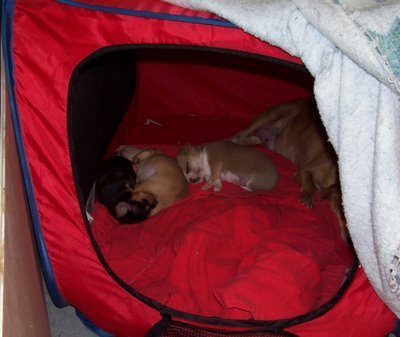 The puppies had a day out in the sun and ate puppy food for the first time today. Maxine gave birth to two girls and one boy. I have found good Georgia Homes for the puppies and will be picking up Maxine and bringing her home to Florida next week. I miss her.