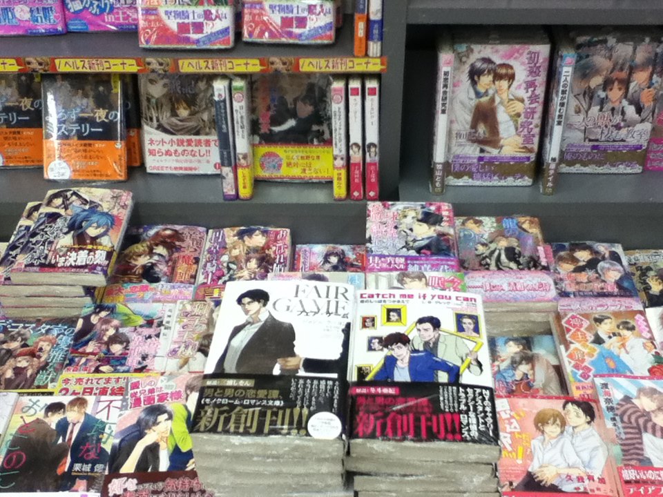 And here's a look at them in action, so to speak, live on the bookshelf at Animate! Photo courtesy of Noriko Emi.