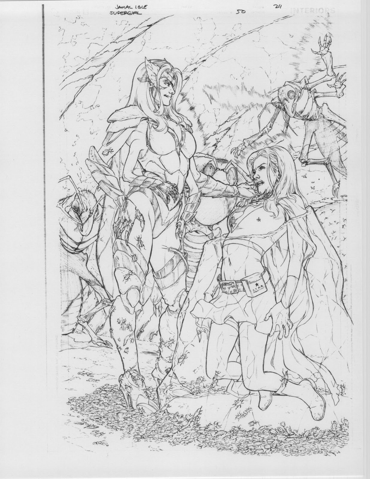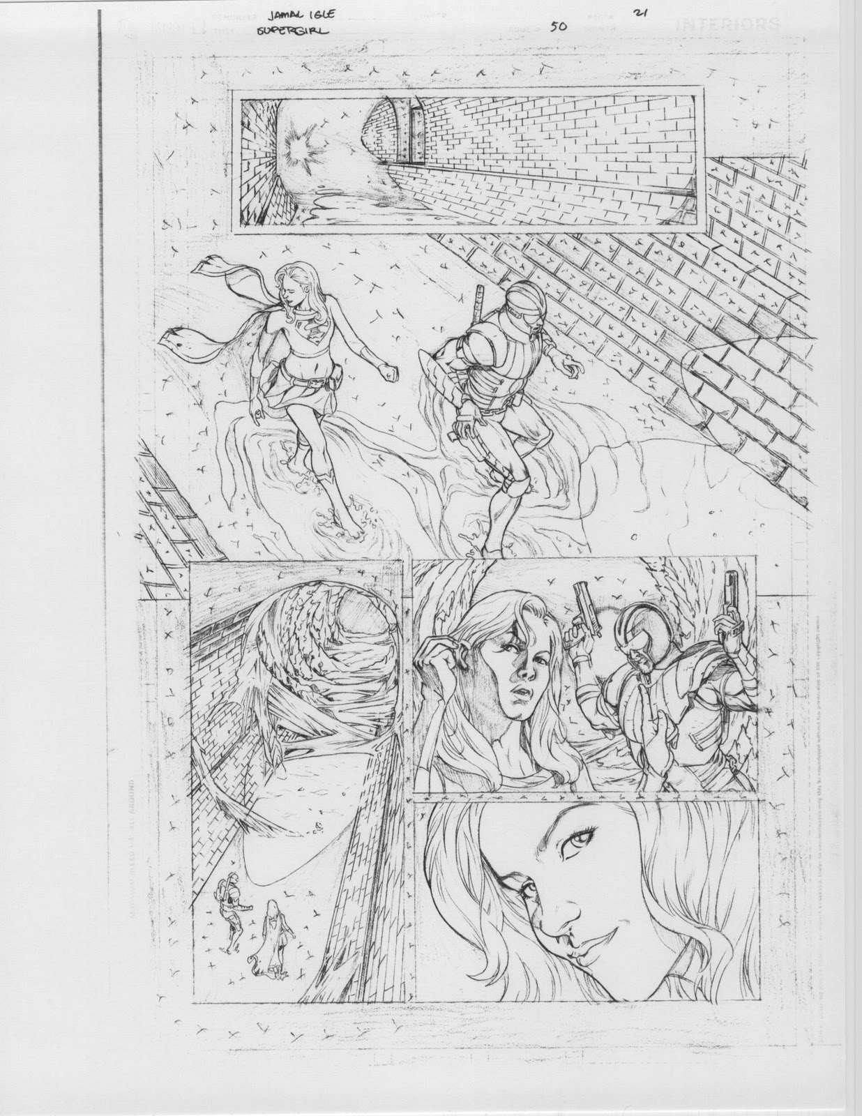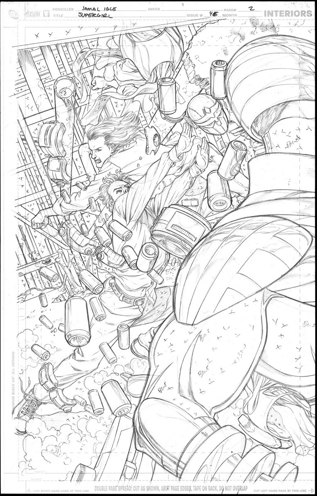 Of all of the issues of Supergirl I drew, Issue 50 was the single most challenging for a number of reasons. At 40 pages, it was the single longest issue I had drawn in several years. I was purposely pulled off Supergirl to have the time to draw the entirety of 50, then World's finest #3 (which we'll review tomorrow) so they would ship in time. I really wanted to pull out all the stops on this and I think the results were positive. The book actually picks up from the Supergirl annual #1 story which delved into the origin of Lucy Lane as Superwoman. Lucy had, up until that point been groomed secretly by her father General Lane, being promoted quickly without merit so that he could incorporate him into his unit. He then provider her with a supersuit that was made to mimic Kryptonian DNA as well as several other alien species.