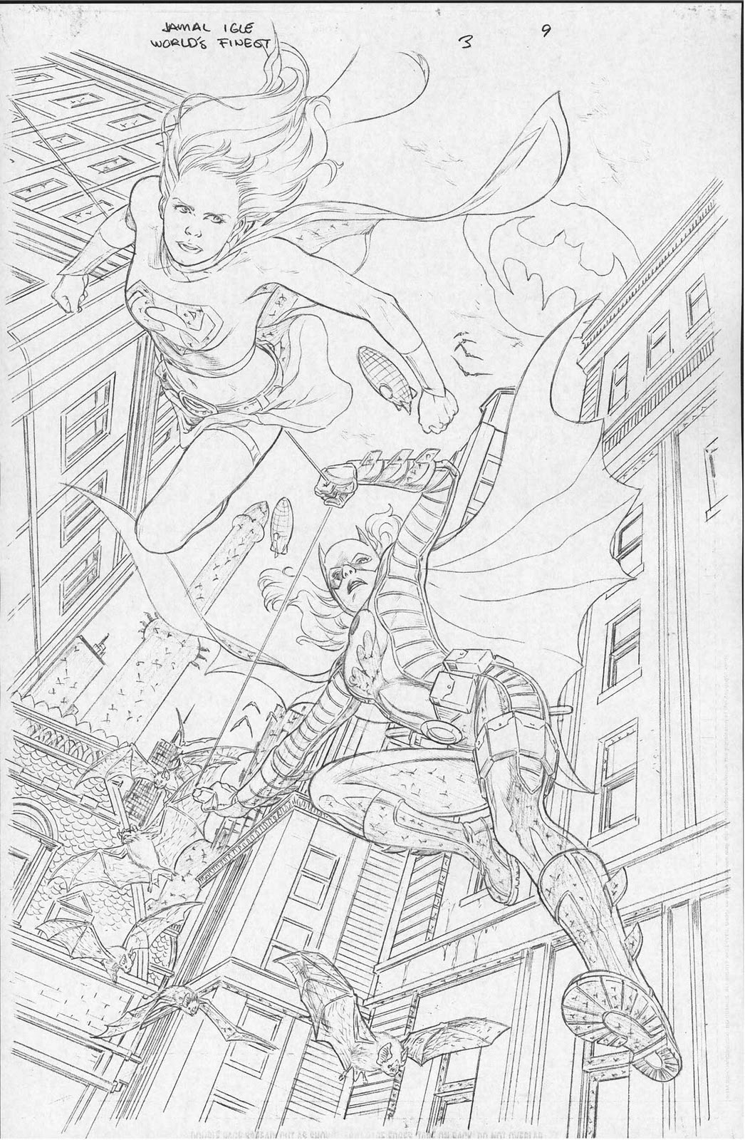 World's Finest #3... Man, what a fun issue to draw. The first official team-up between Supergirl and the former Spoiler/Robin turned Batgirl, Stephanie Brown. How this came about was because of whatever reason the original series artist Julian Lopez didn't get past issue 1, so the editors got different artists to finish the series. The issue preceding mine was drawn by Ramon Bachs and issue after me by the awesome Phil Noto. Sterling called me up as I was finishing Supergirl #50 and asked me if I could do it. Immediately said yes and we were off to the races!The issue was inked by Jon Sibal and colored by one of my favorite colorists, Brian Miller.