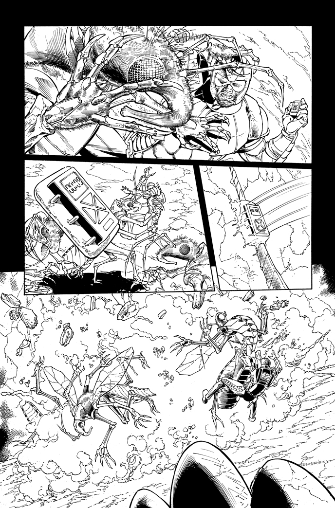 This fight sequence was a bit daunting, because of the the confined space and the fact that I had , with the exception of General lane, never drawn any of these characters before. I also didn't have clear reference as well so my characters were a bit off model versus the artist who drew the issues before and after.