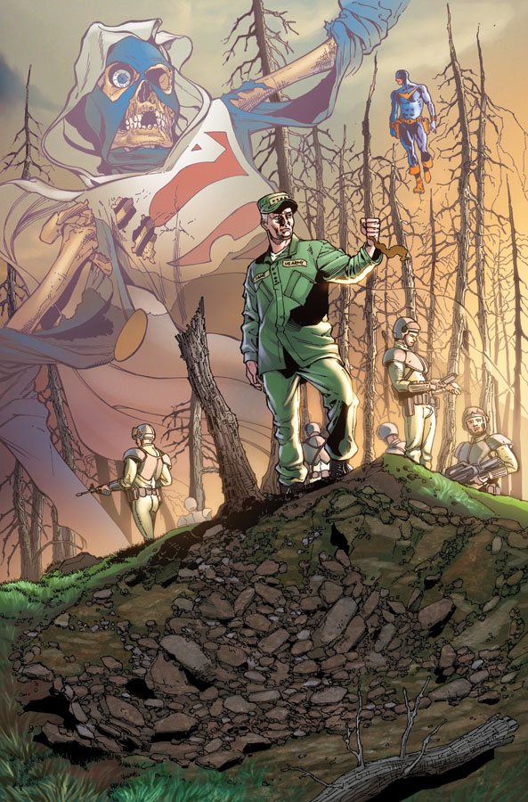 So when the issue opens, we see General Sam Lane, leader of Project 7734 dealing with the loss of his daughter.