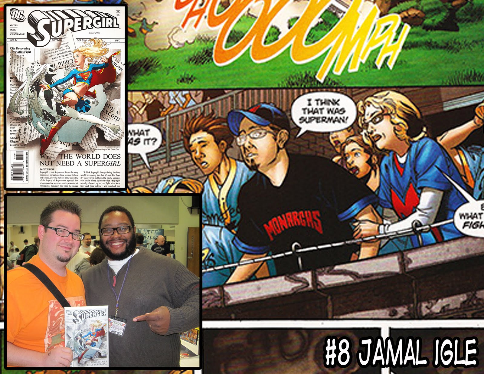 Time passed on by, and I usually don't sweat it. After all, even if I get drawn in the same day I ask, it takes at least three months before it sees print. But I was beginning to think I was forgotten about. Then the news hit in June; Supergirl was to get a new creative team with Jamal as the penciler. I decided to congratulate the man, after all... as a reader of the book, this was great news. I reintroduced myself and my campaign, thinking he'd forgotten all about me. He hadn't.