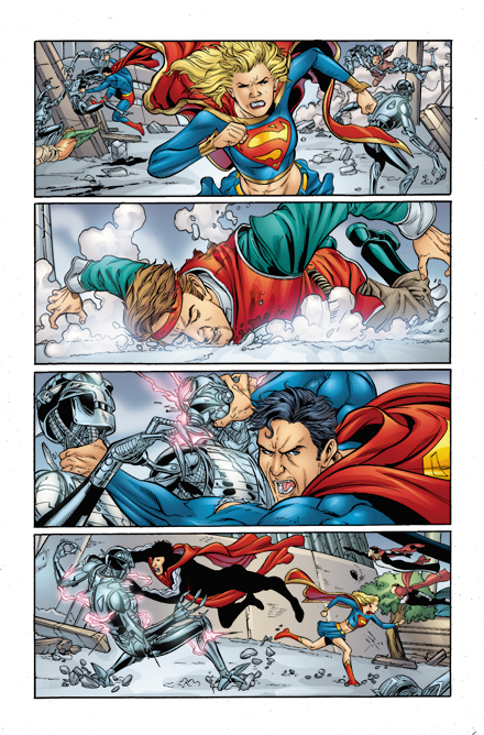 Okay, there's a problem that most people don't know about. When I was drew this sequence I was ahead of schedule, so when Pete Woods drew this page in Action comics..