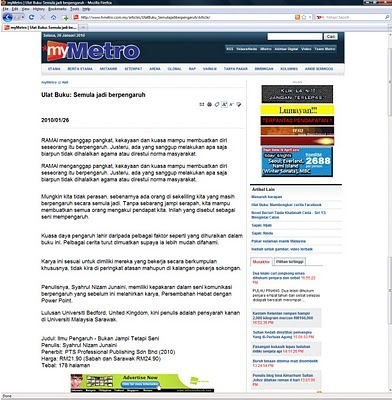 Ulasan di ruangan Ulat Buku, Harian Metro: Semula jadi berpengaruh