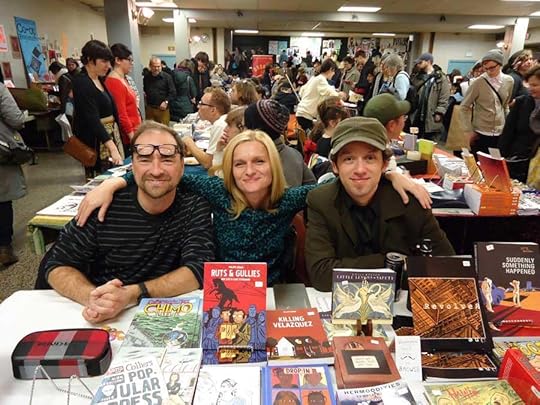 Here’s a few photos from the event, a pan around the room before the doors opened on day one, and one of me with Michel Rabagliati & Nina Bunjevac, at the Conundrum table where i was slumming day one.