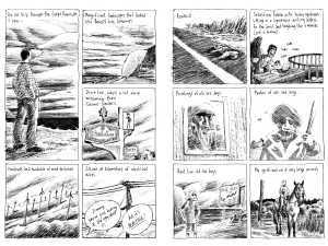 “The fictions unfold surreally. “Each day he awakes to another dream-like day,” reveals the narrator of “Pin City”. But these are not dreams of optimism; there is little joy to be found either in the text or the art work. What these stories do offer, however, is a looking glass to contemporary North American society where predominantly men above a certain age are caught up in a kind of hinterland between what they imagine life should offer and what the reality of their existence is.”