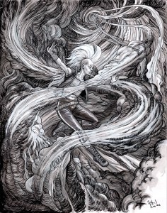 My first credited professionally published B&W title! I had a few short stories in anthologies before this but this was the first time I did a whole book myself, that got printed by a publisher and distributed widely! I drew two issues, and half of a third for this fantasy series, before having a bit of a falling out with the writer who wanted me to draw a demon biting my favorite character’s breasts off! I was not down with that so after he refused to change it I ended up walking away from the project. Here’s the first two issues. My freind Richard pace painted the cover of the first issue, and drew a backup story in the second.