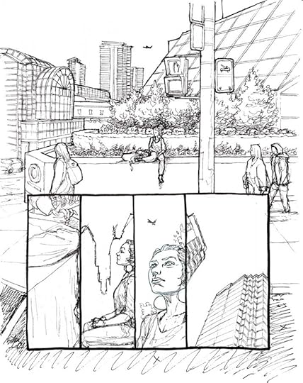 A lot of Dream Life is set is a semi fictional version of Toronto. In that I am basing it on real places but take liberties liberally to suit my storytelling desires. As I was walking the route from my script for this scene, taking location shots for reference. Passing through his inverted forest seemed perfect. it echoes the earlier scene that happens in a forest under trees, and just generally evokes a lot of appropriate things about PJ in this moment. Been looking forward to drawing it since I was there taking the ref shot in 2008. Originally had planed to used it much later in the story. Part that would not fit in this first book. But after realizing I was going to have to break the story up to get it done and publish it, I felt PJ’s narrative was weak as is. So I found a way to bring this forward, and in a way make it far better and more meaningful as well, I hope.