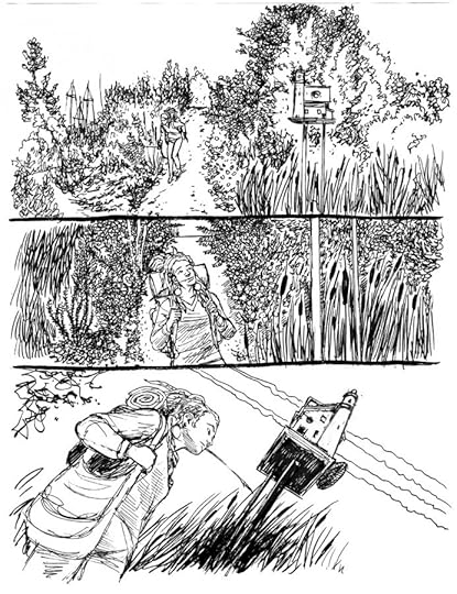 Got the last of these scanned a couple days ago, inking them by now. The rest of the book is done. These six wordless pages go in the middle, to help give PJ some room to breath as a character. She has one of the most intense narratives in the book. I’m hopping this will help put some of the pieces in place. Looking, here, think it works.