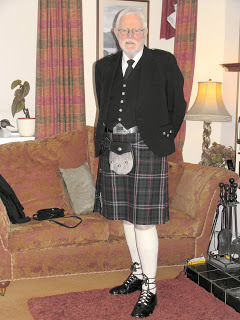 If you've got this far you won't mind me adding a personal footnote - on two fronts. First, this was my first adoption of Highland regalia and, as Dee remarked, the first time my knees had appeared in public other than on a beach. I found it very comfortable but will be returning it to the hirers in Inverness on Monday.