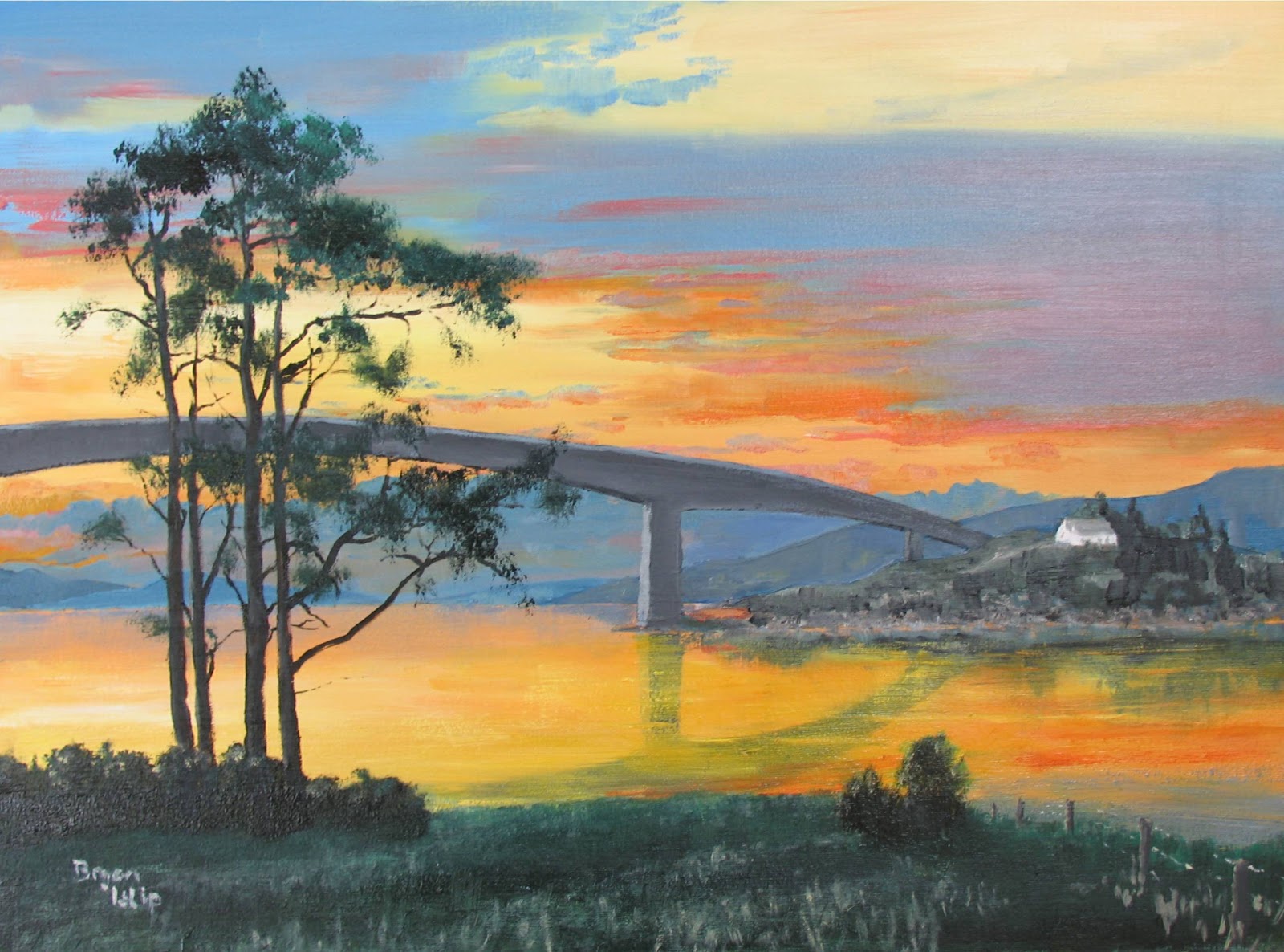 The sunset is a different sketch as are the scottish pines in the forground. For me composition is more than half the battle/ I have little desire to paint exactly what is there. The pines for instance are the clump you will see on the right hand side of the roadway travelling from Ullapool to Inverness - just after you pass the Braemore junction. Bonnie Prince Charlie, speeding in his bonnie boat like a bird on the wing, would have more likely seen these than the deciduous / anonymous trees that are actually there today.