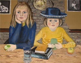 This is an oil painting c 30 x 25 cm. I executed it around 1970, the year we moved south as demanded by my career progression, from Lancashire to Hampshire. However it is possible my two lovely girls, Kairen Jane (left) and Julie Elaine may have been younger than the 14/15 and 11/12 indicated by that date.