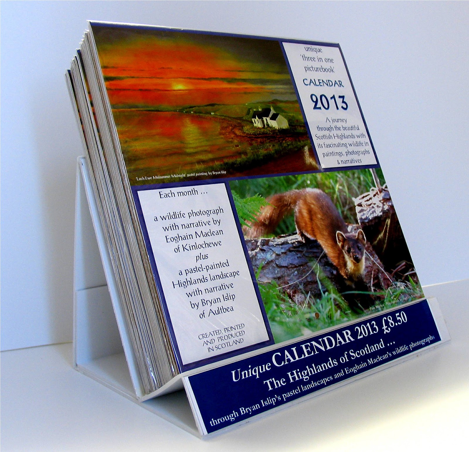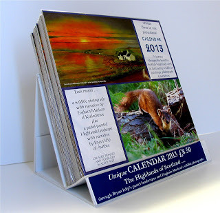 I'm handling the retail shops here in the west Highlands and Eoghain is breaking new ground with those over in the east, plus many direct to the public markets. In addition I've presented this 'Unique Three-in-one Picturebook Calendar' (paintings, photos and narratives) to some of the UK'sbiggest retail chains. You never know, Don Quixote might topple the windmill. He will never know if he doesn't try.