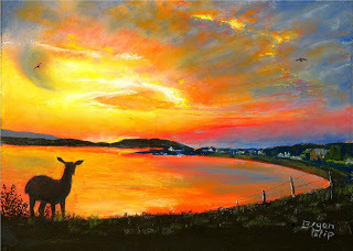 Very soon I'll be on my rounds of Wester-Ross shops, hopefully to stock them up with our 'Pictures and Poems' greetings cards, prints and of course the calendar which is this year (that is, selling 2012 a calendar for 2013) a joint effort with my pastel landscapes and Eoghain Maclean's beautiful wildlife photographs