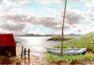This one is without the net drying poles (I became tired of explaining them and they did nothing for the original composition.) Also I have brightened up the day and added the row of anchors that really are there, if only just out of sight around the dunes in real life..